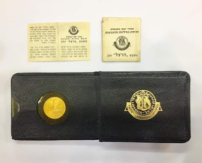 מטבע הזהב הראשון של מדינת ישראל הונפק על ידי בנק ישראל לפני 60 שנה במלאות 100 שנה להולדתו של חוזה המדינה 1860-1960.